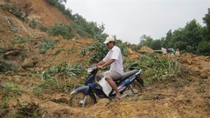| Đường bị sạt lở cô lập 8.000 dân ở huyện Ba Tơ (Ảnh: Tuổi trẻ) |
