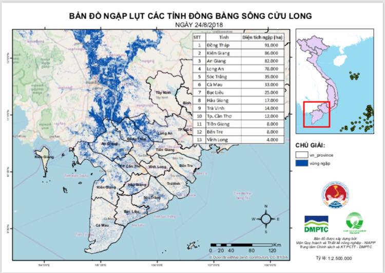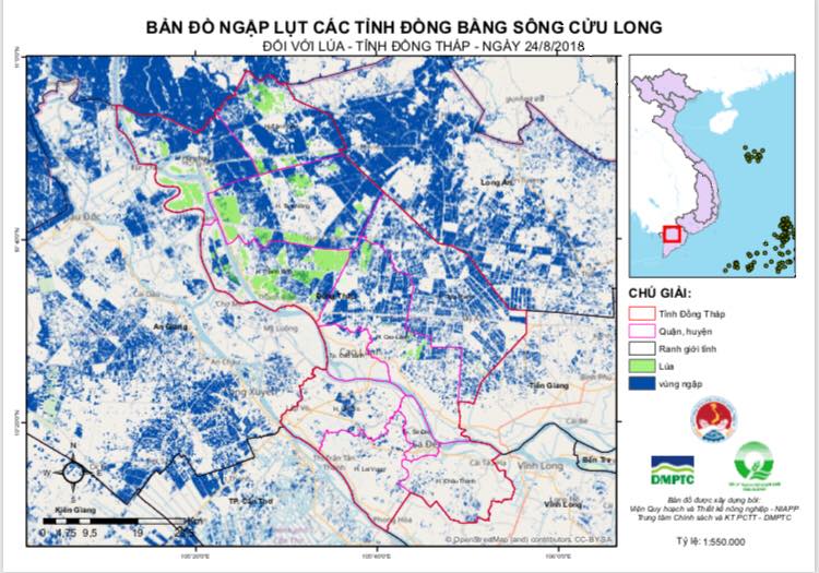Trung tâm Chính sách và Kỹ thuật phòng chống thiên tai đã phối hợp với Cục Viễn thám quốc gia kích hoạt Sentinel Asian, đồng thời hợp tác với Trung tâm GIS, Viện Quy hoạch và Thiết kế nông nghiệp (NIAPP) xây dựng bản đồ ngập và diện tích lúa bị ngập lũ. Hoạt động này sẽ tiếp tục trong quá trình lũ và báo cáo thường xuyên Tổng cục PCTT.