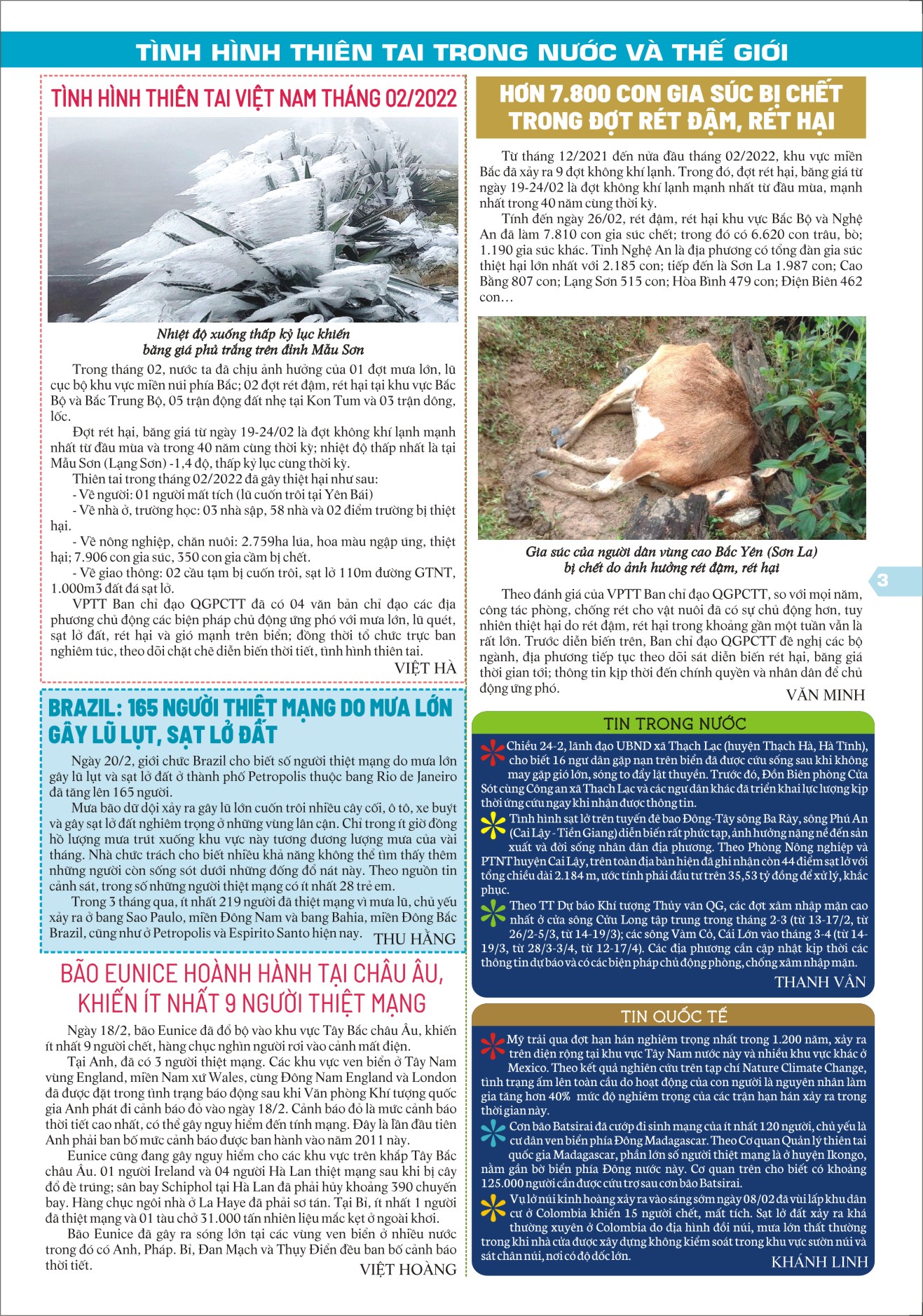 0:0:0, 01/11/2022 Bản tin thiên tai tháng 02/2022