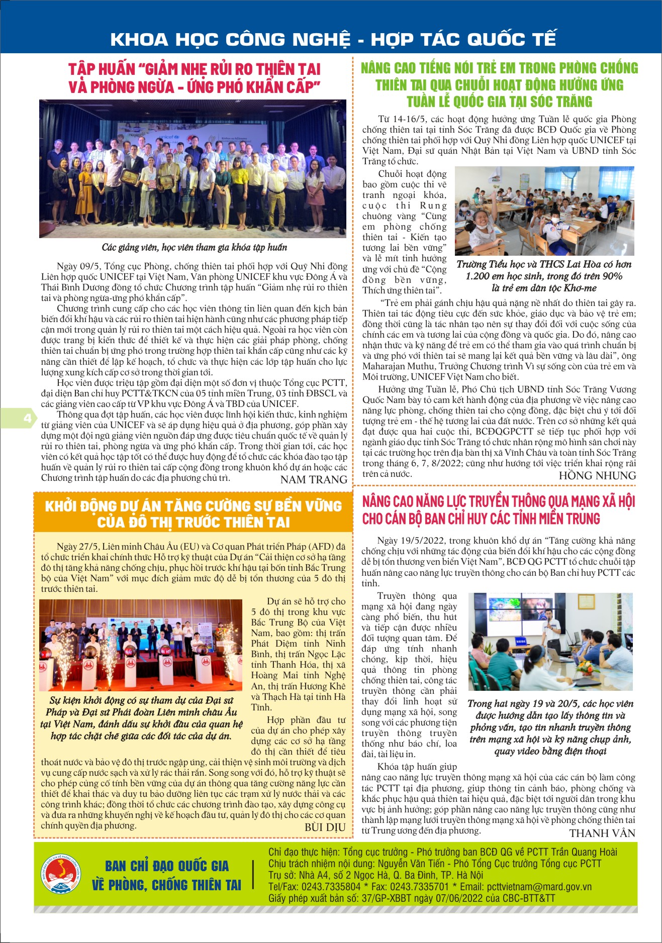 • Tập huấn nâng cao năng lực cho đội ngũ cán bộ cấp xã về phòng chống thiên tai, quản lý rủi ro thiên tai dựa vào cộng đồng