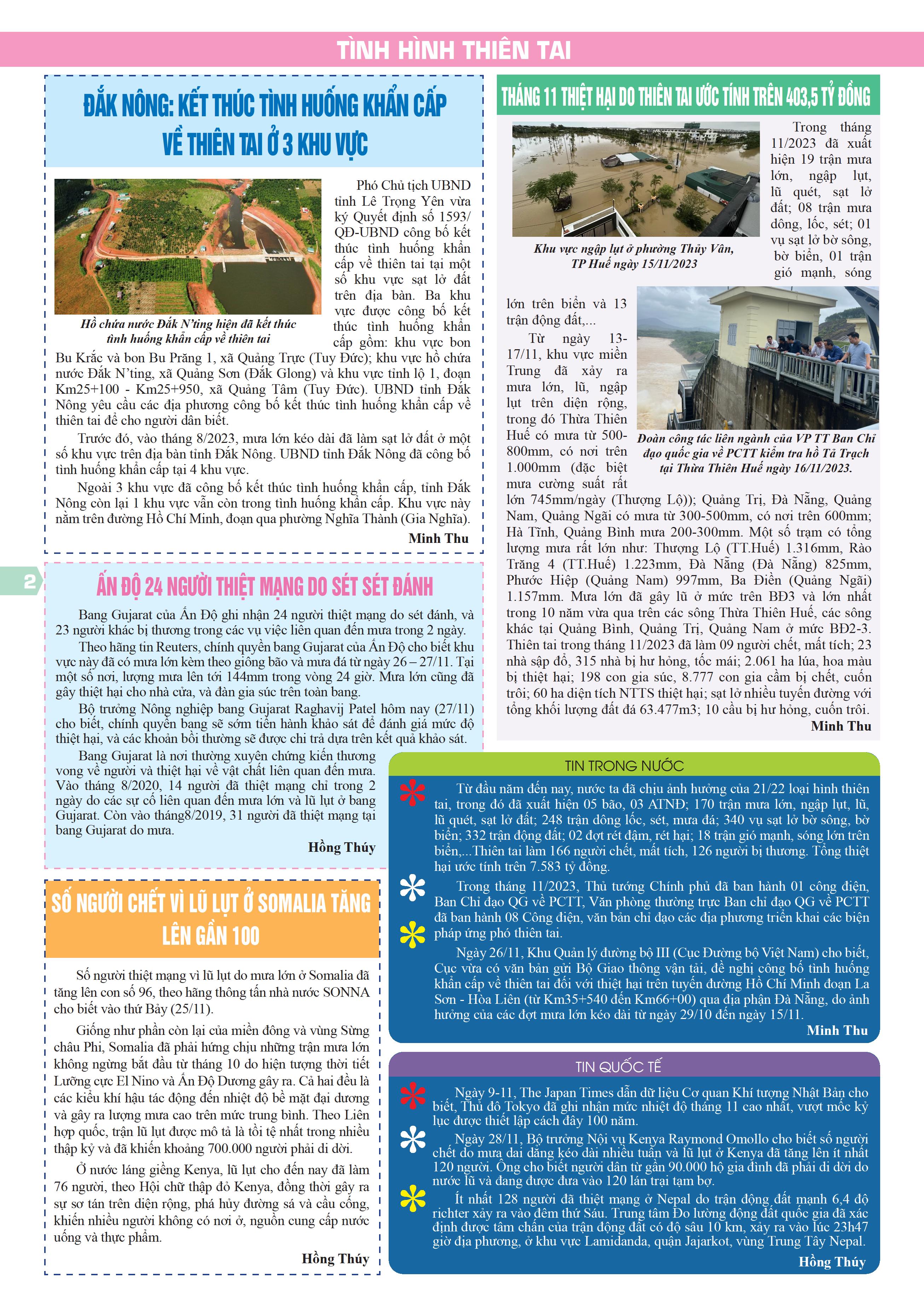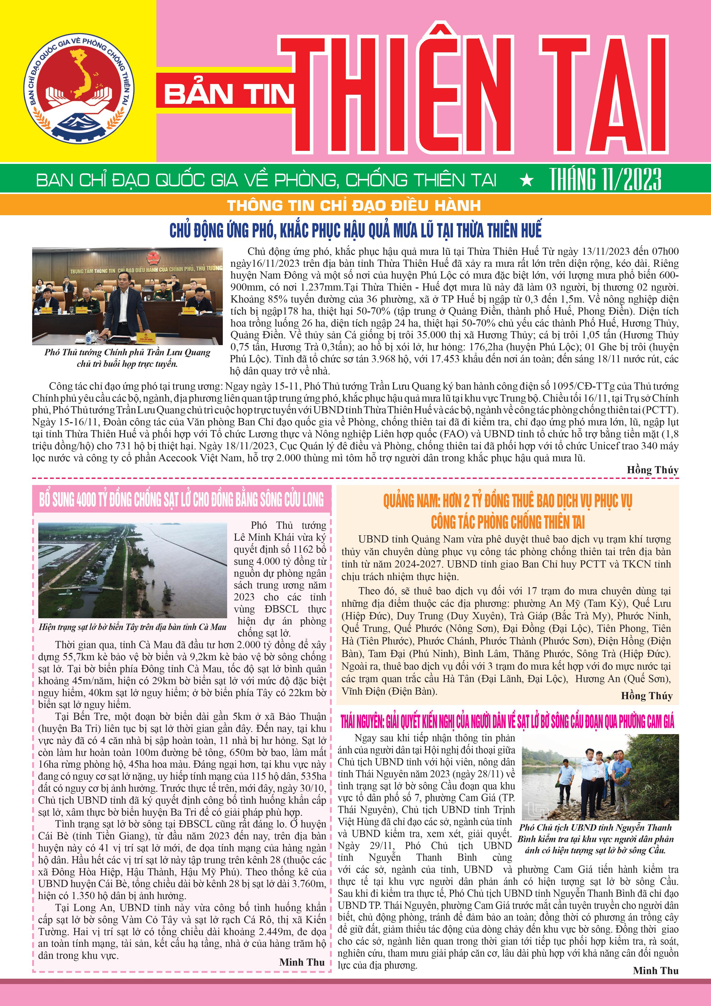 Bản tin thiên tai tháng 11/2023