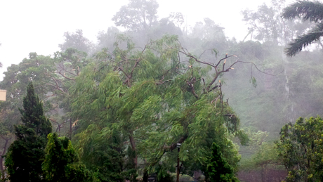 | Tại TP Móng Cái gió đã mạnh dần lên cấp 8, giật cấp 9-10 gây đổ gẫy cây cối. |