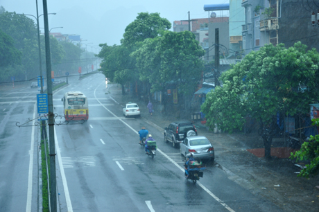 * Tại TP Hạ Long, Cẩm Phả, thời tiết đã có mưa vừa, có lúc mưa to, gió cấp 7-8, giật cấp 9.