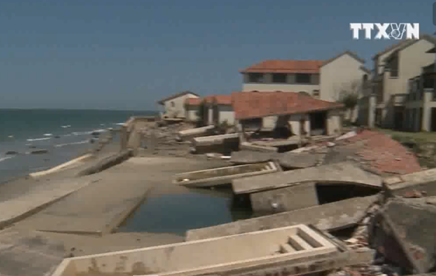 Tại Cửa Đại, chỉ trong vòng 10 năm qua, nước biển đã xâm thực vào đất liền gần 200m và khiến nhiều công trình tại đây đổ sập, cuộc sống người dân điêu đứng, ngành du lịch Hội An bị ảnh hưởng nghiêm trọng.