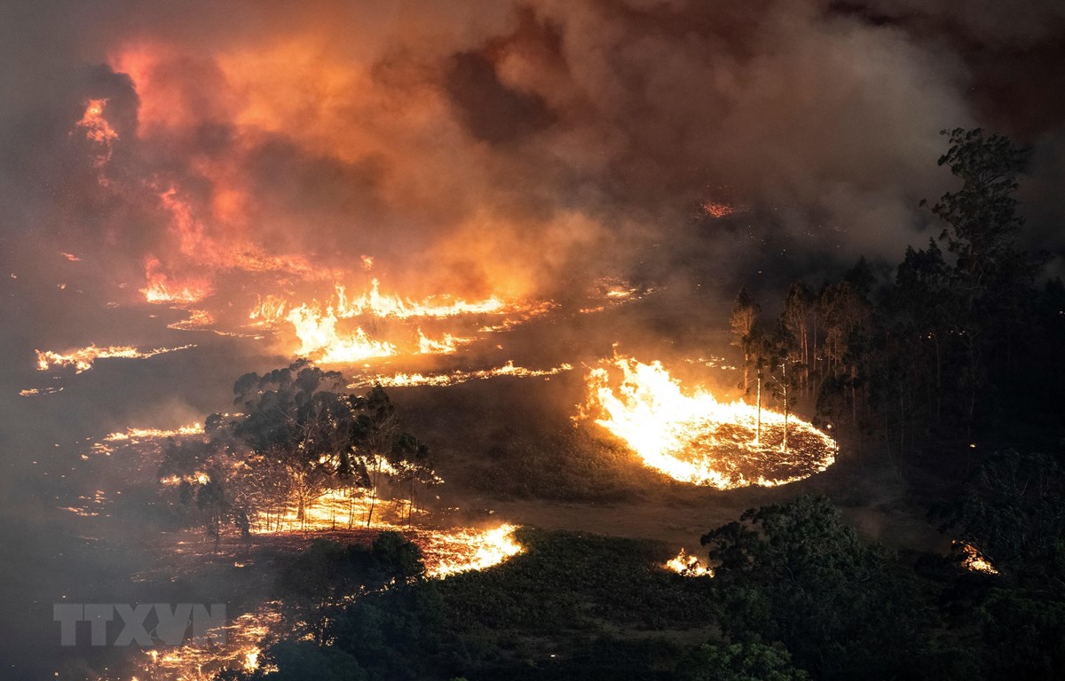 Khói lửa bốc lên từ đám cháy rừng ở bang Victoria, Australia ngày 31/12/2019.
