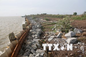 8:40:0, 15/05/2014 Trà Vinh là tỉnh ven biển thuộc vùng đồng bằng sông Cửu Long, có bờ biển dài 65 km qua địa bàn 9 xã, thị trấn thuộc 3 huyện: Duyên Hải, Cầu Ngang và Châu Thành, với gần 17.500 hộ dân sinh sống; trong đó huyện Duyên Hải có bờ biển dài gần 55 km. Điều đáng lo ngại là khoảng 10 năm trở lại đây, do ảnh hưởng biến đổi khí hậu, nước biển dâng cao đã làm cho hàng trăm ha đất rừng phòng hộ, đất sản xuất, đất ở của hàng trăm hộ dân ở 10 ấp thuộc 3 xã ven biển Hiệp Thạnh, Trường Long Hòa và Đông Hải (huyện Duyên Hải) bị nước biển xâm thực, gây ảnh hưởng rất lớn đến đời sống của nhiều hộ dân. Trong đó, có một số tuyến đê được đầu tư lớn xây dựng kiên cố cũng bị nước biển cuốn trôi, buộc phải đầu tư xây dựng lại.