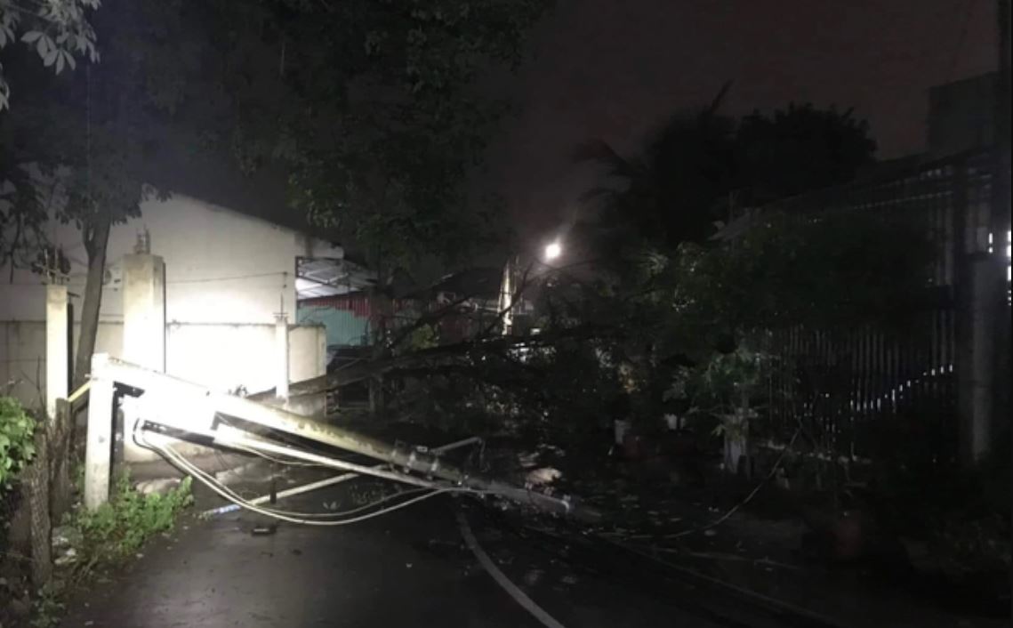 Bình Dương: Cây gãy đổ, trụ điện gãy đôi trong cơn mưa dông xối xả