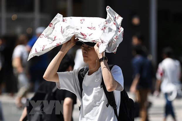 Người dân di chuyển trên đường phố dưới trời nắng nóng tại Tokyo, Nhật Bản. (Ảnh: AFP/TTXVN)