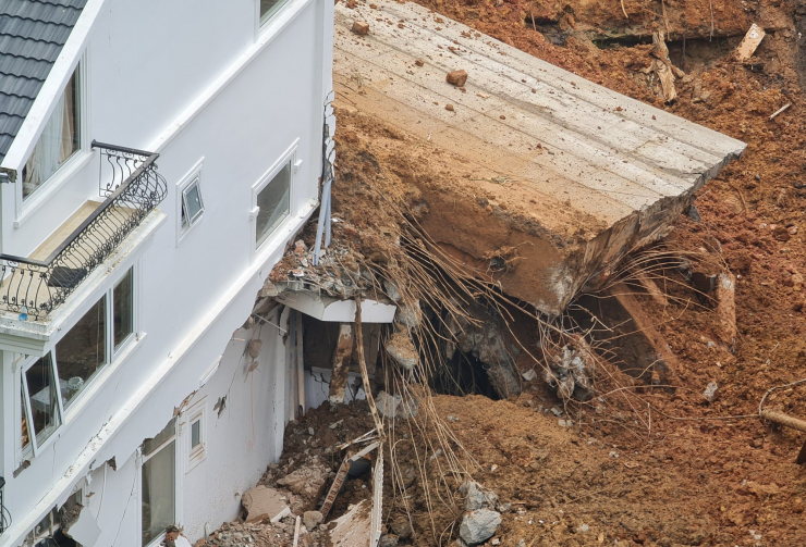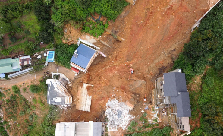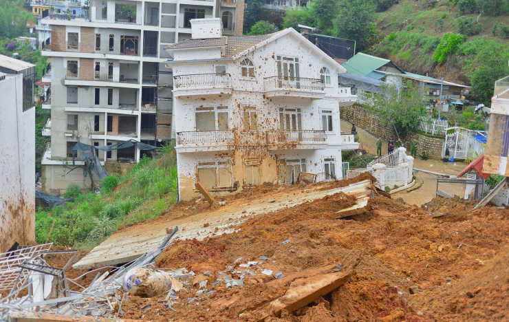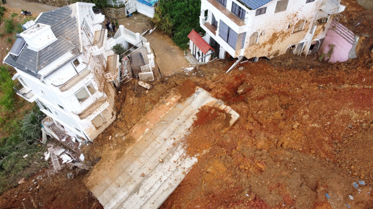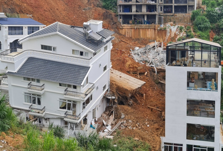 Vụ sạt lở còn khiến nhiều ngôi nhà cao tầng, kiên cố khác hư hỏng nặng.