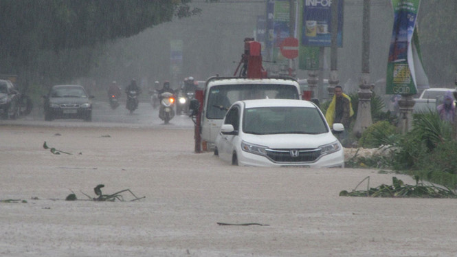 Trong khi đó, mưa lớn trong 2 ngày 13 - 14.10 đã khiến nhiều địa phương ngập nặng. Tại Quảng Bình, theo Đài khí tượng thủy văn tỉnh, tổng lượng mưa đo được từ 19 giờ ngày 12.10 đến chiều 14.10 tại nhiều nơi đều trên 300 mm, riêng tại Mai Hóa lên đến 520 mm, Hàm Ninh 402 mm. Mưa lớn khiến nhiều nơi chìm trong nước, TP biển Đồng Hới giao thông bị tê liệt, nhiều nhà dân và chợ P.Nam Lý ngập sâu.