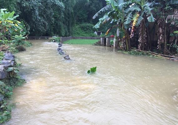 Đường vào xóm Pác Ái, xã Quảng Hưng bị ngập sâu gần nửa mét.