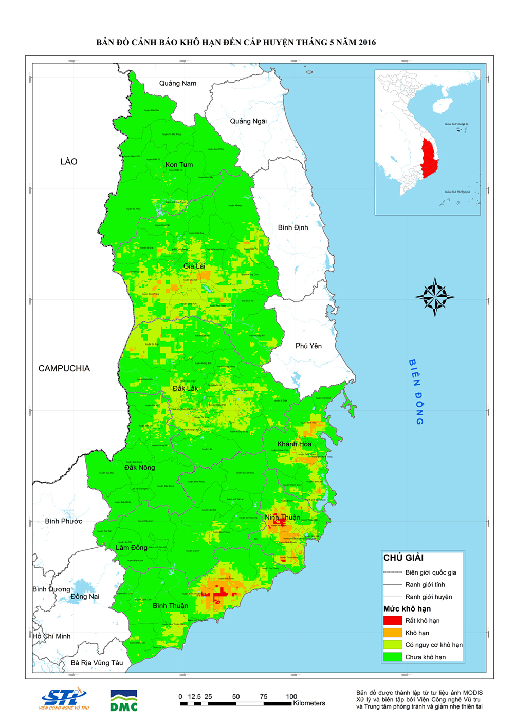 Trung tâm Phòng tránh và Giảm nhẹ thiên tai đã phối hợp với Viện Công nghệ vũ trụ (STI-VAST) tiếp nối triển khai thu thập ảnh vệ tinh quang học và xử lý ảnh, thành lập bản đồ khô hạn giai đoạn tiếp nối từ 29/3/2016 đến 30/5/2016 cho khu vực tương tự nêu trên.