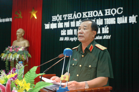 Phát biểu khai mạc Hội thảo, Trung tướng Mai Quang Phấn, Ủy viên Trung ương Đảng, Phó Chủ nhiệm TCCT nhấn mạnh: Biến đổi khí hậu, nước biển dâng gây tác động ảnh hưởng rất lớn đến quân đội trong quá trình thực hiện chức năng nhiệm vụ là đội quân chiến đấu, công tác, lao động sản xuất. Mặt khác, do yêu cầu nhiệm vụ bảo vệ Tổ quốc, lực lượng quân đội thường xuyên có mặt và hoạt động ở tất cả các vùng miền của đất nước, bao gồm cả đất liền, trên không, trên biển, đảo, vùng bị ô nhiễm… Lực lượng quân đội cũng sẽ góp phần chống biến đổi khí hậu. Chính vì vậy, những năm qua, Quân ủy Trung ương, Bộ Quốc phòng đã ban hành nhiều văn bản, chỉ thị về bảo vệ môi trường, chủ động ứng phó với BĐKH như: Bổ sung sửa đổi ban hành Điều lệ công tác bảo vệ môi trường trong Quân đội năm 2011; ban hành Kế hoạch hành động ứng phó với BĐKH giai đoạn 2013 – 2020”.