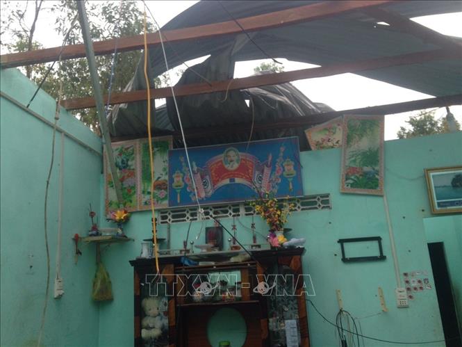 Căn nhà của người dân bị tốc mái sau cơn lốc xoáy tại huyện Krông Pa, chiều tối 2/5.