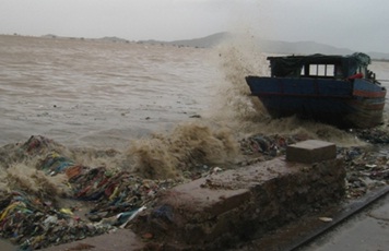 | Ở Hải Phòng, sóng lớn, biển động dữ dội |