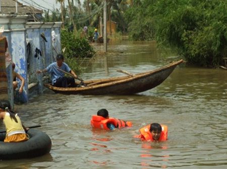 | Nhiều con đường ngập nước sau cơn bão tại Thanh Hóa |