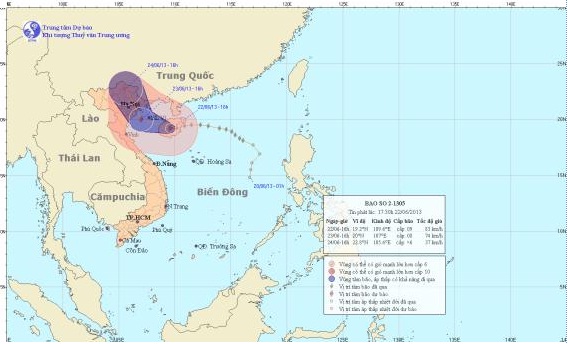 Dự báo trong khoảng 24 giờ tới, bão di chuyển theo hướng giữa Tây và Tây Tây Bắc, mỗi giờ đi được khoảng 15 - 20km. Đến 13 giờ ngày 23 tháng 6, vị trí tâm bão ở vào khoảng 20,4 độ Vĩ Bắc; 107,3 độ Kinh Đông, trên khu vực vịnh Bắc Bộ, cách bờ biển Quảng Ninh - Hải Phòng khoảng 80km về phía Đông Nam. Sức gió mạnh nhất vùng gần tâm bão mạnh cấp 8, cấp 9 (tức là từ 62 đến 88 km một giờ), giật cấp 10, cấp 11.