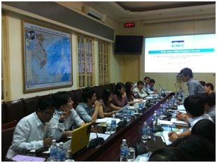Đại diện phía ADPC, Ông Sudhir Kumar trình bày tóm tắt nhu cầu và phương pháp tiếp cận xây dựng cổng thông tin GNRRTT. Trung tâm ADPC đóng vai trò làm tư vấn kỹ thuật trong việc xây dựng cổng thông tin GNRRTT Việt Nam. Ông Bill Ho, Quản lý phòng Công nghệ thông tin và Truyền thông, ADPC trình bày dự thảo cổng thông tin GNRRTT Việt Nam, giới thiệu mẫu thu thập thông tin, cách phân tích thông tin các dự án GNRRTT, quyền người sử dụng và người quản lý.