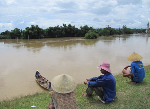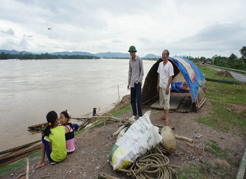 Chiều chiều, các cụ già sơ tán trên đê ngồi nhìn về phía làng, mong chờ nước xuống.
