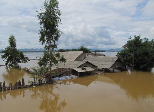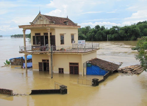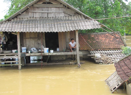 Những ngôi nhà ven sông nước ngập tới nóc.