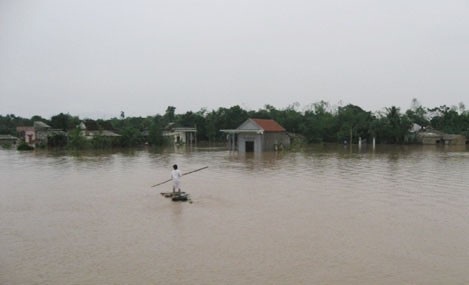 Vùng hạ du bị úng ngập khi hồ Kẻ Gỗ xả tràn trong trận lũ lịch sử năm 2010