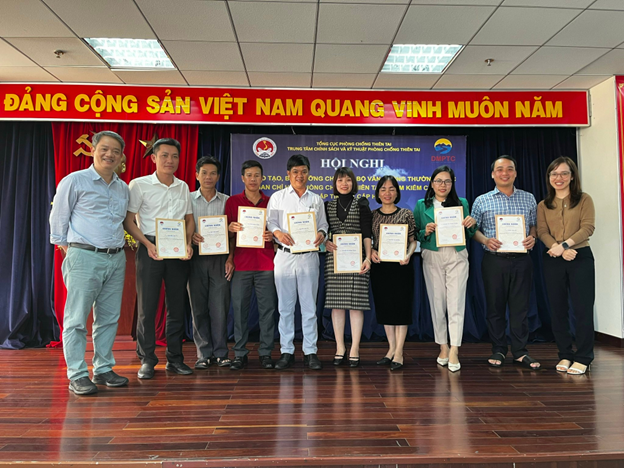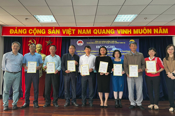 Trung tâm Chính sách và Kỹ thuật phòng chống thiên tai trao giấy chứng nhận cho các học viên hoàn thành khóa tập huấn.