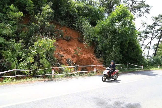 Điểm đầu tiên xuất hiện vào ngày 17.9 và đang có nguy cơ lan rộng. Tại các điểm sạt trượt, nhiều khối đất và cây rừng đã bị trượt xuống mương thoát nước và một phần mặt đường. Hiện, ngành chức năng đã giăng dây và cắm các biển cảnh báo nguy hiểm tại các điểm sạt trượt.