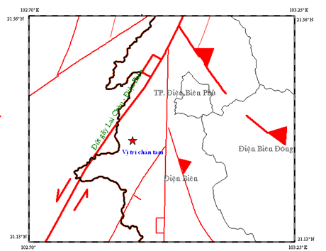 Theo Viện Vật lý địa cầu, trận động đất xảy ra lúc 6h7' (giờ GMT) tức 13h7' (giờ Hà Nội) hôm nay (20/5) tại vị trí có tọa độ (21,328 độ vĩ  Bắc, 102,926 độ kinh Đông), độ sâu chấn tiêu khoảng 10 km. Động đất xảy ra trong khu vực huyện Điện Biên, tỉnh Điện Biên.