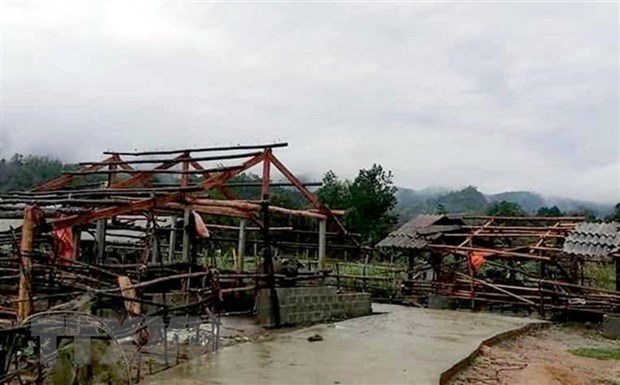 Một nhà dân ở huyện Chiêm Hóa, Tuyên Quang bị hư hỏng do mưa lốc. (Ảnh TTXVN phát)