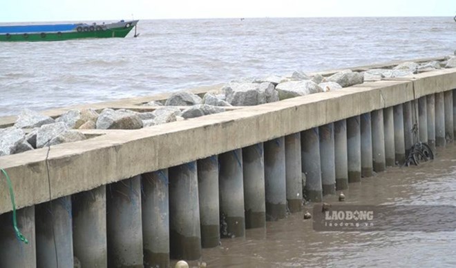 Hệ thống kè đã góp phần ngặn chặn tình trạng sạt lở nghiêm trọng ở các xã ven biển huyện An Minh, tỉnh Kiên Giang. Ảnh: Nguyên Anh