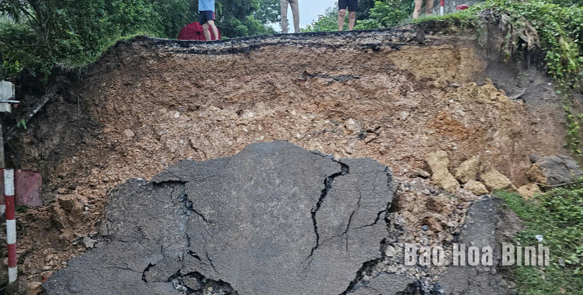Trước đó, do ảnh hưởng của mưa lũ đã gây sạt lở taluy âm, lún sụt nền mặt đường trên đoạn tuyến km3+500, đường tỉnh 445 thuộc phường Kỳ Sơn (thành phố Hòa Bình) làm hư hỏng kết cấu hạ tầng giao thông đường bộ.