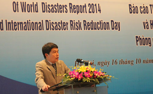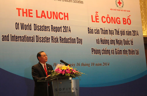 Chủ tịch Hội Chữ thập đỏ Việt Nam Nguyễn Hải Đường phát biểu khai mạc tại Lễ công bố Báo cáo Thảm họa thế giới 2014