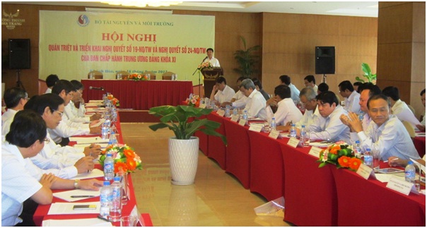 Để sớm đưa các chủ trương của Nghị quyết vào thực tiễn cuộc sống, theo Bộ trưởng Nguyễn Minh Quang, việc quán triệt, thể chế hóa và tổ chức thực hiện các nội dung là đặc biệt quan trọng nhằm tạo sự thống nhất cả về nhận thức và hành động trong việc triển khai thực hiện. “Vì vậy, trách nhiệm của ngành tài nguyên và môi trường là hết sức nặng nề, trước hết trong việc sửa đổi, bổ sung các luật, xây dựng mới các bộ luật, các văn bản dưới luật; kiện toàn tổ chức bộ máy, nâng cao năng lực đội ngũ cán bộ nhà nước từ Trung ương đến địa phương, cơ sở; xây dựng và thực hiện các kế hoạch, chương trình đặt ra. Thực tế đó đòi hỏi chúng ta phải nỗ lực, quyết tâm lớn và sáng tạo trong triển khai thực hiện các nhiệm vụ giải pháp”, Bộ trưởng Nguyễn Minh Quang chỉ đạo.