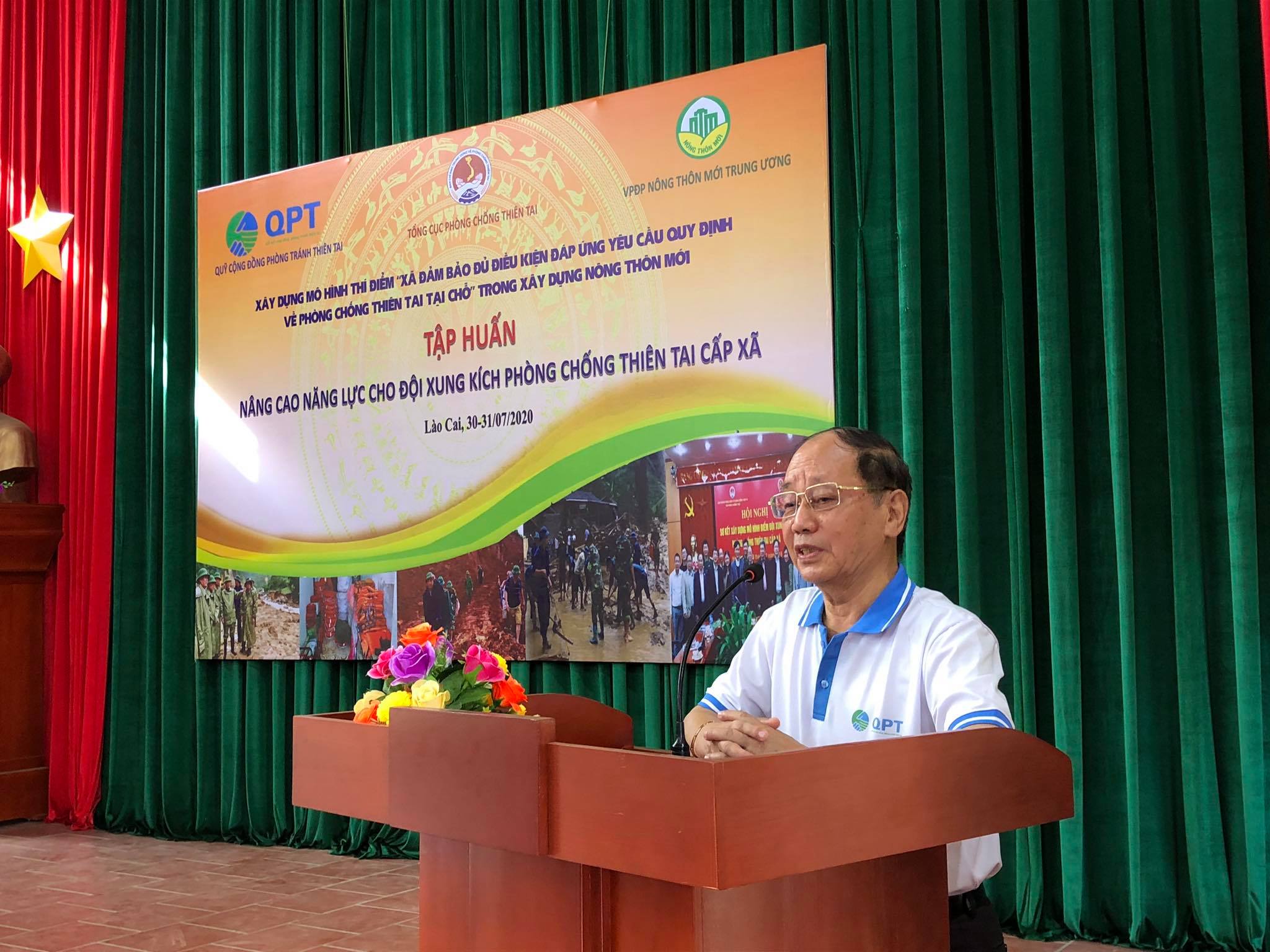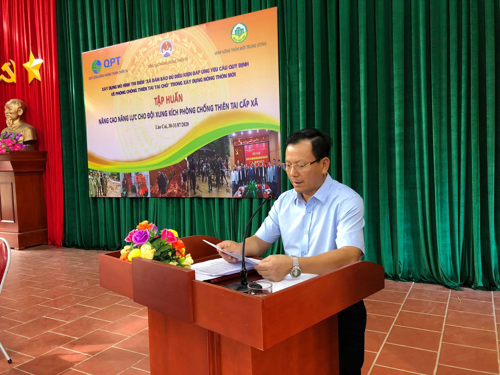 Phát biểu tại Hội nghị, Ông Hoàng Quốc Khánh Phó Chủ tịch UBND - Phó Trưởng Ban Chỉ huy PCTT và TKCN tỉnh Lào Cai trân trọng cảm ơn Ban Chỉ đạo Trung ương về PCTT và các đơn vị Trung ương đã lựa chọn, tổ chức hội thảo tập huấn tại tỉnh Lào Cai vào đúng thời điểm và có ý nghĩa thiết thực trong công tác PCTT khi hiện nay Lào Cai và các tỉnh miền núi phía Bắc đang chịu ảnh hưởng to lớn của mưa cục bộ, lũ quét, sạt lở đất ở nhiều địa phương, đặc biệt là huyện Bát Xát địa phương chịu thiệt hại to lớn về người và tài sản trong những năm gần đây. Tỉnh Lào Cai xác định rõ công tác PCTT là nhiệm vụ trọng tâm, chú trọng lấy phương châm “phòng ngừa là chính” và phát huy tối đa hiệu quả phương châm “bốn tại chỗ”. Do đó, tỉnh đã kiện toàn 152/152 đội xung kích PCTT cấp xã với 11.088 người. Tỉnh Lào Cai rất vinh dự là 1 trong 6 tỉnh tiên phong thực hiện mô hình thí điểm “Xã đảm bảo đủ điều kiện đáp ứng yêu cầu quy định phòng chống thiên tai tại chỗ”. Ông Khánh cũng yêu cầu toàn bộ học viên tập trung lắng nghe, tiếp thu bài học, kinh nghiệm, kỹ năng tích cực thảo luận, thực hành để nâng cao năng lực của toàn bộ lực lượng xung kích PCTT xã Trịnh Tường đủ năng lực vận hành sáng tạo vào thực tế để giảm thiểu thấp nhất thiệt hại về người và tài sản của nhân dân khi có thiên tai xảy ra.