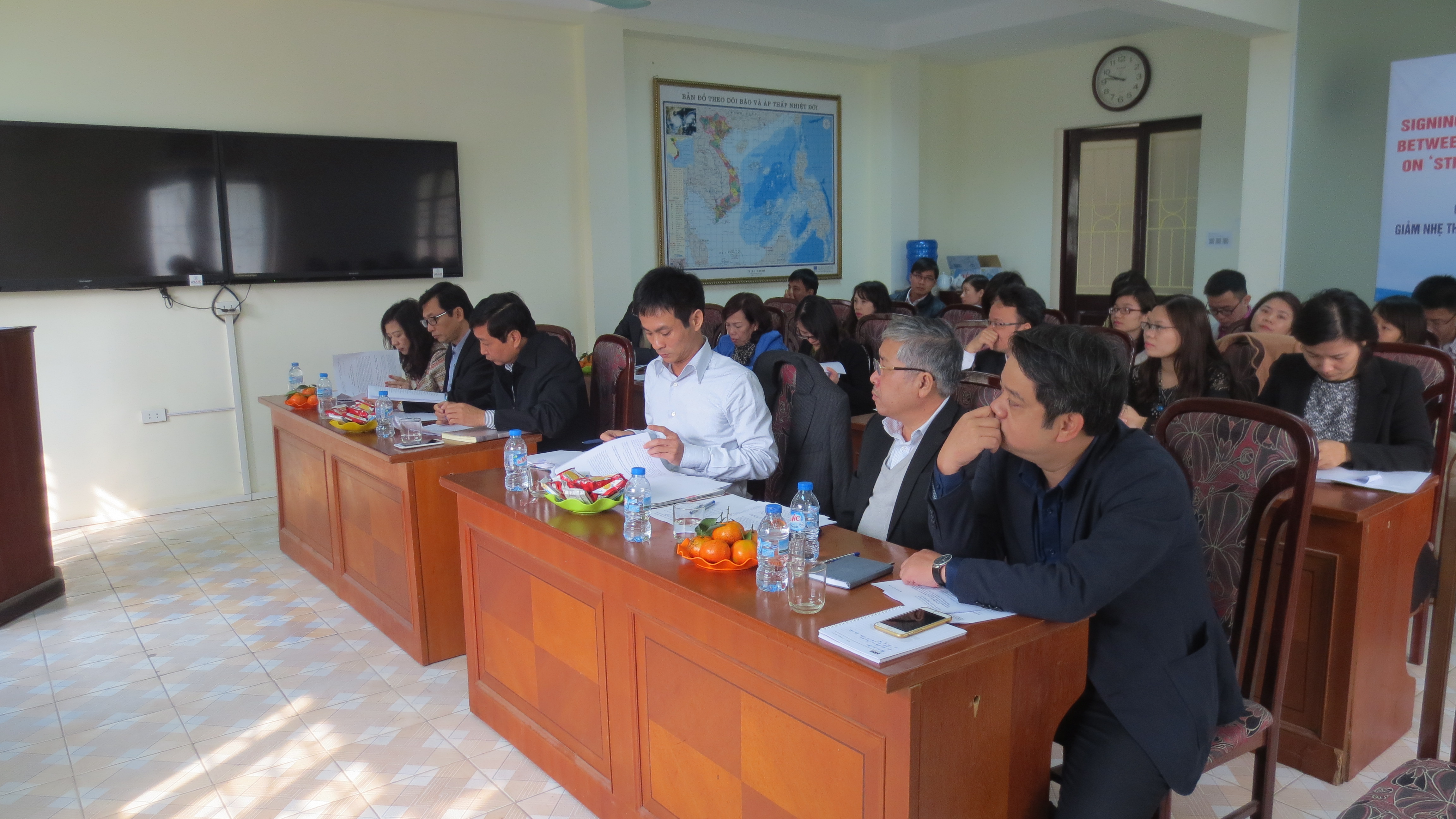 Thành phần tham dự hội thảo gồm ông Trần Quang Hoài - Phó Tổng cục Trưởng Tổng cục Thủy lợi; đại diện văn phòng Tổng cục Thủy lợi - ông Phạm Hồng Quang; ông Văn Phú Chính - Cục trưởng Cục Phòng, chống thiên tai; Bà Nguyễn Thị Liên, Phó vụ trưởng Vụ Kế hoạch Tài chính cùng toàn thể cán bộ Trung tâm Phòng tránh và Giảm nhẹ thiên tai.