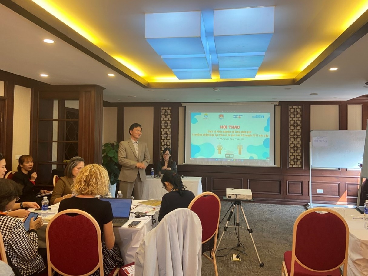Trước đó, với mục tiêu tăng cường năng lực, hỗ trợ kỹ thuật cho cán bộ lập kế hoạch PCTT ở các cấp địa phương thực hiện lồng ghép giới và phòng chống bạo lực trên cơ sở giới trong quá trình xây dựng, ban hành, triển khai và giám sát việc thực hiện, kết quả Kế hoạch PCTT hàng năm và 05 năm, Cục Quản lý đê điều và PCTT phối hợp với UNWomen đã tổ chức 02 cuộc họp kỹ thuật tại cấp trung ương và cấp tỉnh để lấy ý kiến đóng góp cho dự thảo “Tài liệu Hướng dẫn lồng ghép giới và phòng chống bạo lực trên cơ sở giới vào kế hoạch PCTT các cấp”; từ đó hoàn thiện tài liệu và thí điểm áp dụng tại hai tỉnh Đà Nẵng và Lào Cai.