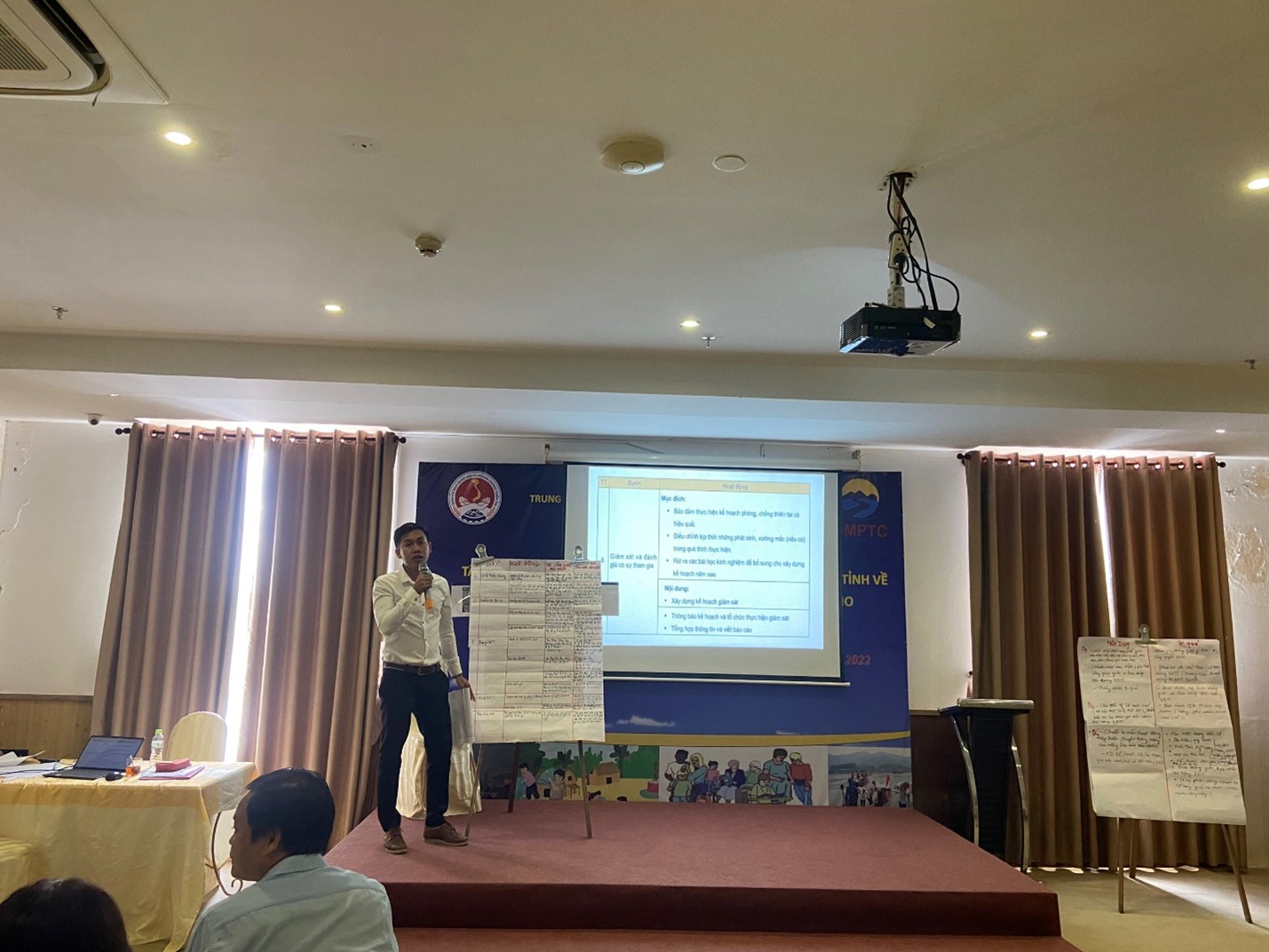 Thực hiện Kế hoạch của Bộ Nông nghiệp và PTNT về việc triển khai thực hiện Đề án “Nâng cao nhận thức cộng đồng và Quản lý rủi ro thiên tai dựa vào cộng đồng, đến năm 2030” giai đoạn 2021-2025 – Đề án 553 tại Quyết định số 333/QĐ-BNN-PCTT ngày 20/1/2022. Với mục tiêu đến năm 2025 đội ngũ giảng viên, tập huấn viên các cấp, đội ngũ cán bộ trực tiếp làm công tác về PCTT đều được phổ biến chính sách, cơ chế, văn bản hướng dẫn, trang bị đủ kiến thức về PCTT để có đủ năng lực tổ chức, triển khai các hoạt động nâng cao nhận thức cộng đồng về thiên tai, hướng dẫn các kỹ năng ứng phó thiên tai cho cộng đồng. Ngày 31/10-4/11/2022, tại thành phố Cần Thơ, Trung tâm Chính sách và Kỹ thuật phòng chống thiên tai đã tổ chức hội nghị “Tập huấn nâng cao kiến thức cho đội ngũ giảng viên cấp tỉnh về quản lý rủi ro thiên tai dựa vào cộng đồng lồng ghép nội dung về giảm nhẹ rủi ro thiên tai cho trường học, doanh nghiệp và người cao tuổi” với sự tham gia đầy đủ và nhiệt tình của các học viên đến từ các tỉnh Kiên Giang, An Giang và Cần Thơ.