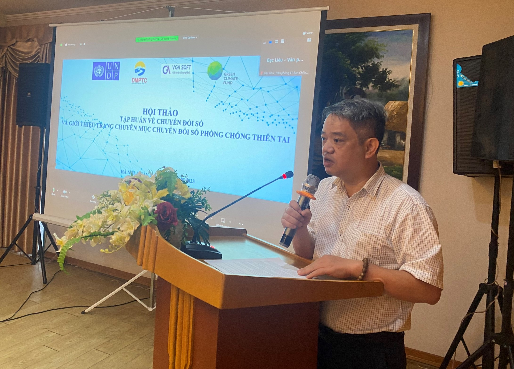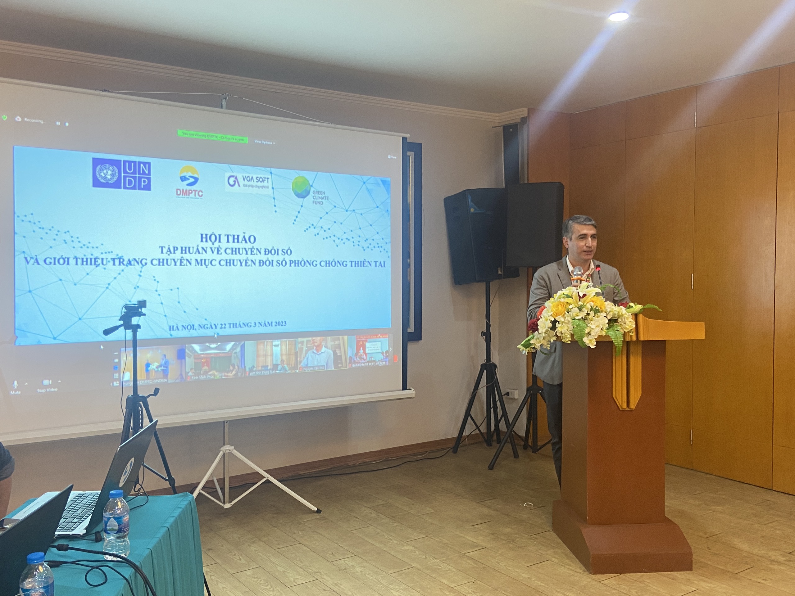 Hội thảo “Tập huấn về chuyển đổi số và giới thiệu trang chuyên mục chuyển đổi số phòng chống thiên tai” được tổ chức vào sáng ngày 22/3/2023 tại Khách sạn Khăn Quàng Đỏ theo 02 hình thức: trực tiếp và trực tuyến. Hội thảo có sự tham gia của các cán bộ, chuyên gia đến từ Cục Quản lý đê điều và Phòng, chống thiên tai; Văn phòng Bộ Nông nghiệp và PTNT; các tổ chức phi chính phủ: UNDP, Save The Children, CRS, Hội Chữ thập đỏ Mỹ,… Ngoài ra còn có sự góp mặt của các lãnh đạo, chuyên viên đại diện Văn phòng thường trực Ban Chỉ huy Phòng, chống thiên tai và Tìm kiếm cứu nạn các tỉnh, thành phố thông qua hình thức trực tuyến.