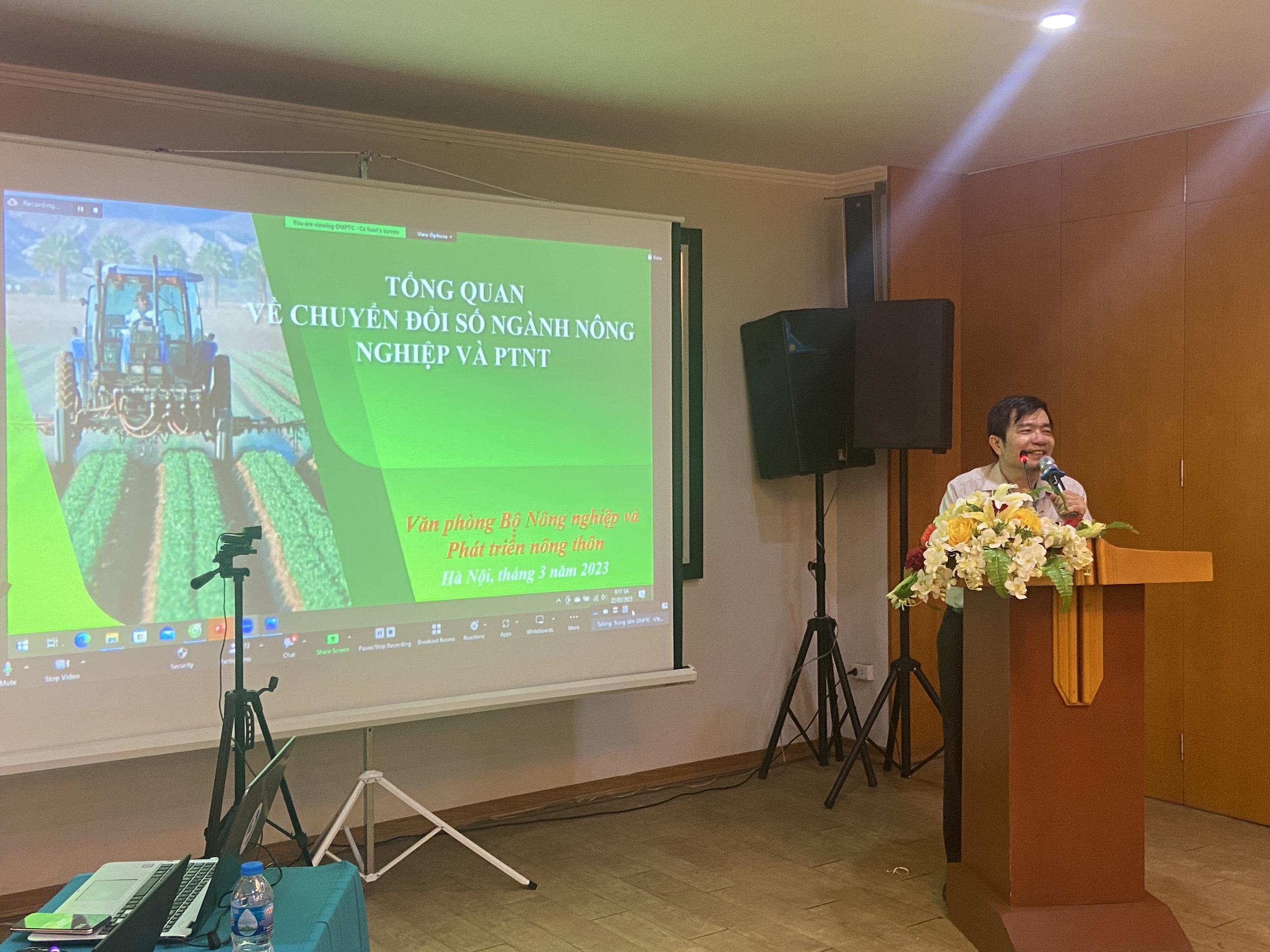 Ông Lê Thanh Châu giới thiệu tổng quan về chuyển đổi số trong lĩnh vực nông nghiệp và PTNT.