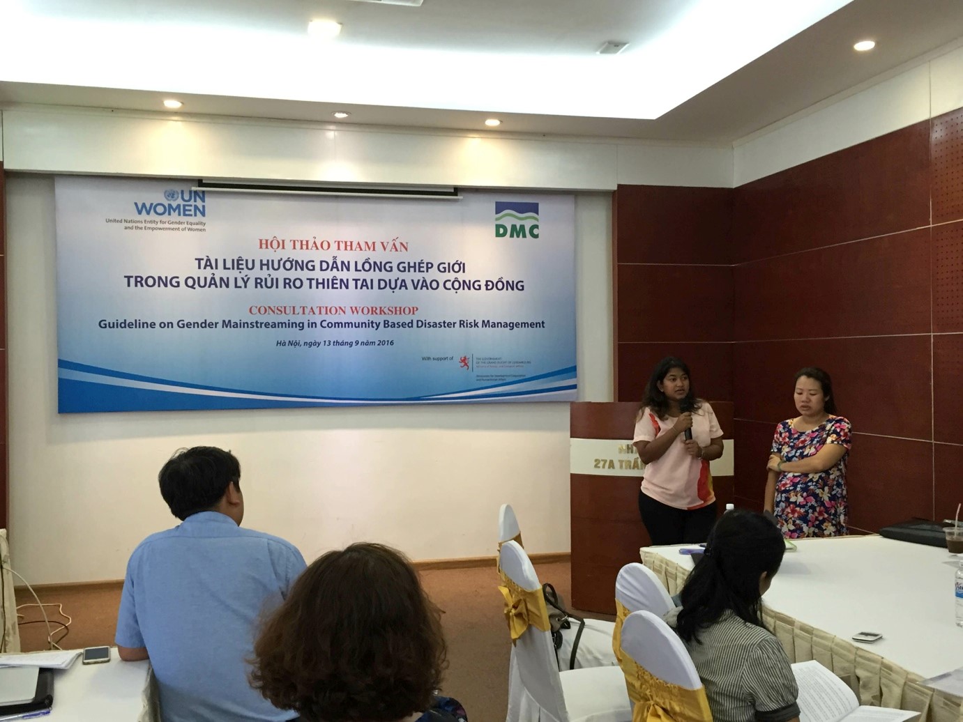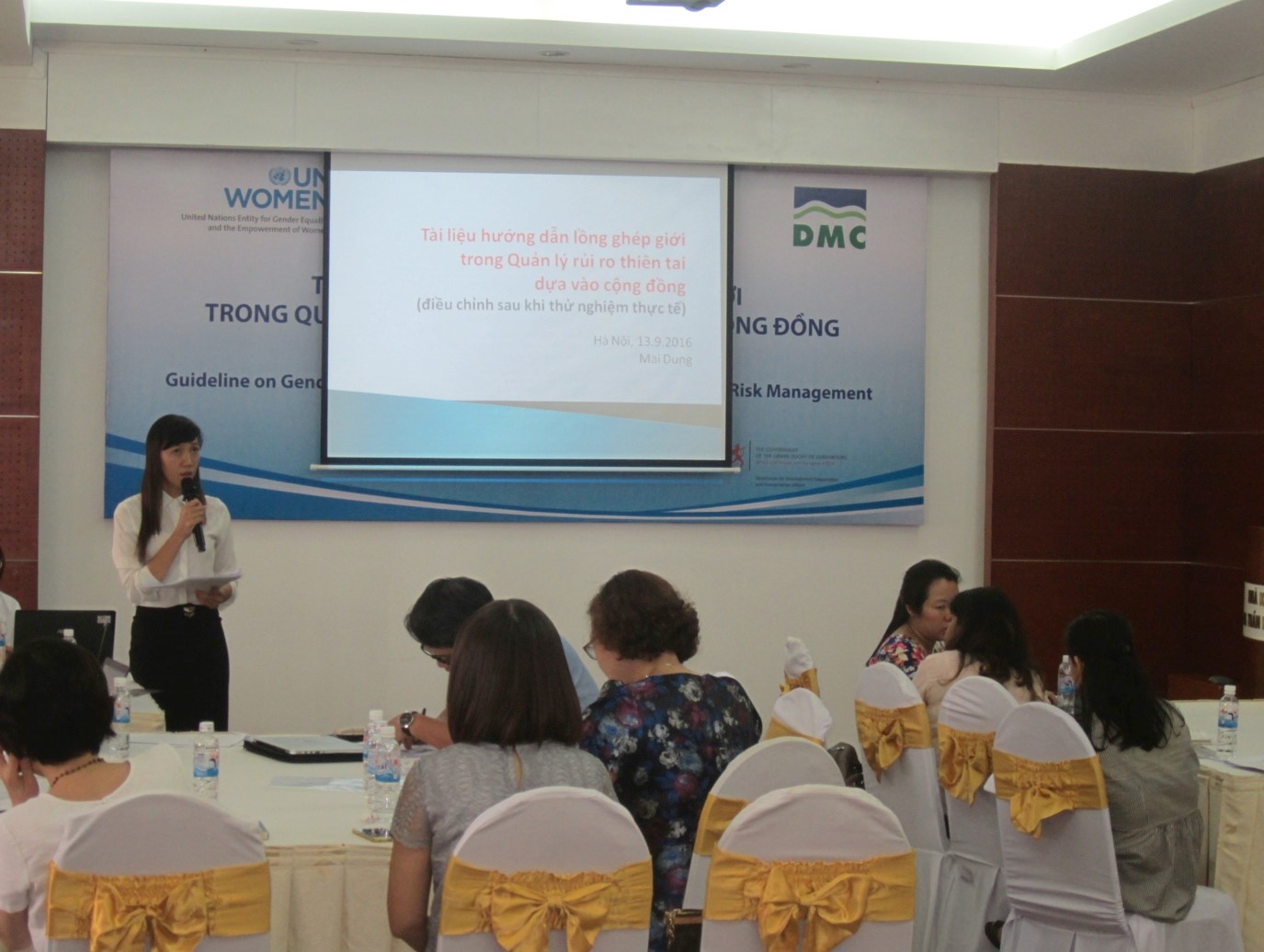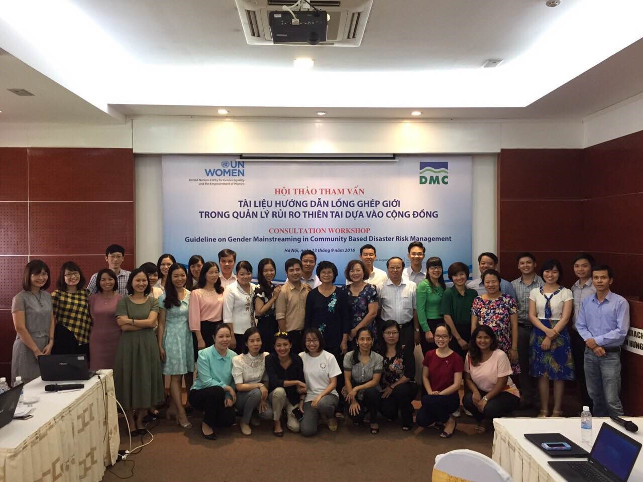 Để hoàn thiện nội dung dự thảo tài liệu, cũng như đảm bảo sự phù hợp của cuốn tài liệu tại cấp cộng đồng, Ngày 13 tháng 9 năm 2016 Trung tâm Phòng tránh và Giảm nhẹ thiên tai phối hợp với UN Women tổ chức Hội thảo tham vấn tài liệu Hướng dẫn lồng ghép giới trong quản lý rủi ro thiên tai dựa vào cộng đồng lần thứ 2.