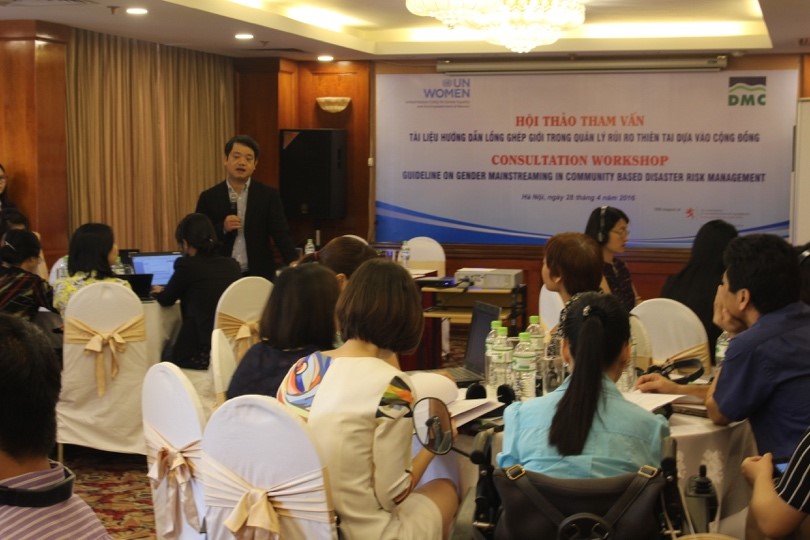Nhằm chia sẻ bản dự thảo lần 1 của tài liệu và ghi nhận các đóng góp từ các tổ chức và cá nhân liên quan, ngày 28/4/2016, Trung tâm Phòng tránh & GNTT phối hợp với UNWomen tổ chức Hội thảo tham vấn tài liệu lồng ghép giới trong QLRRTT-DVCĐ tại Hà Nội