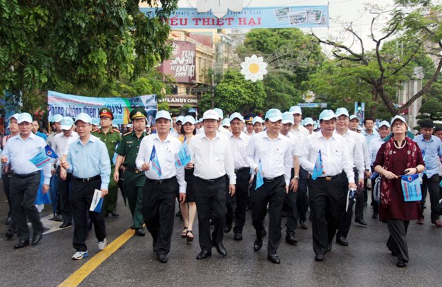 Các đại biểu đi bộ hưởng ứng phát động Tuần lễ quốc gia phòng, chống thiên tai.
