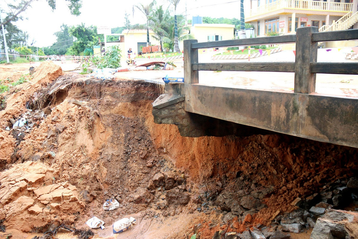 Lũ cát đỏ tràn xuống khiến cây cầu qua thôn Tiến Hải bị sập mố, mất an toàn nên được lực lương chức năng phong tỏa, chỉ dẫn các phương tiện lưu thông theo hướng khác.