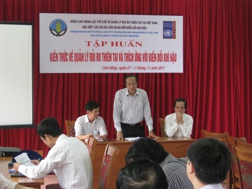 Trong khuôn khổ dự án “Nâng cao năng lực thể chế về quản lý rủi ro thiên tai tại Việt Nam, đặc biệt là các rủi ro liên quan đến biến đổi khí hậu – SCDM” do Chương trình Phát triển Liên Hợp Quốc (UNDP) tài trợ, khóa tập huấn cho các cán bộ công tác về phòng tránh và giảm nhẹ thiên tai cấp tỉnh và cấp huyện đã được tổ chức từ ngày 07 – 11/11/2011 tại tỉnh Cao Bằng.