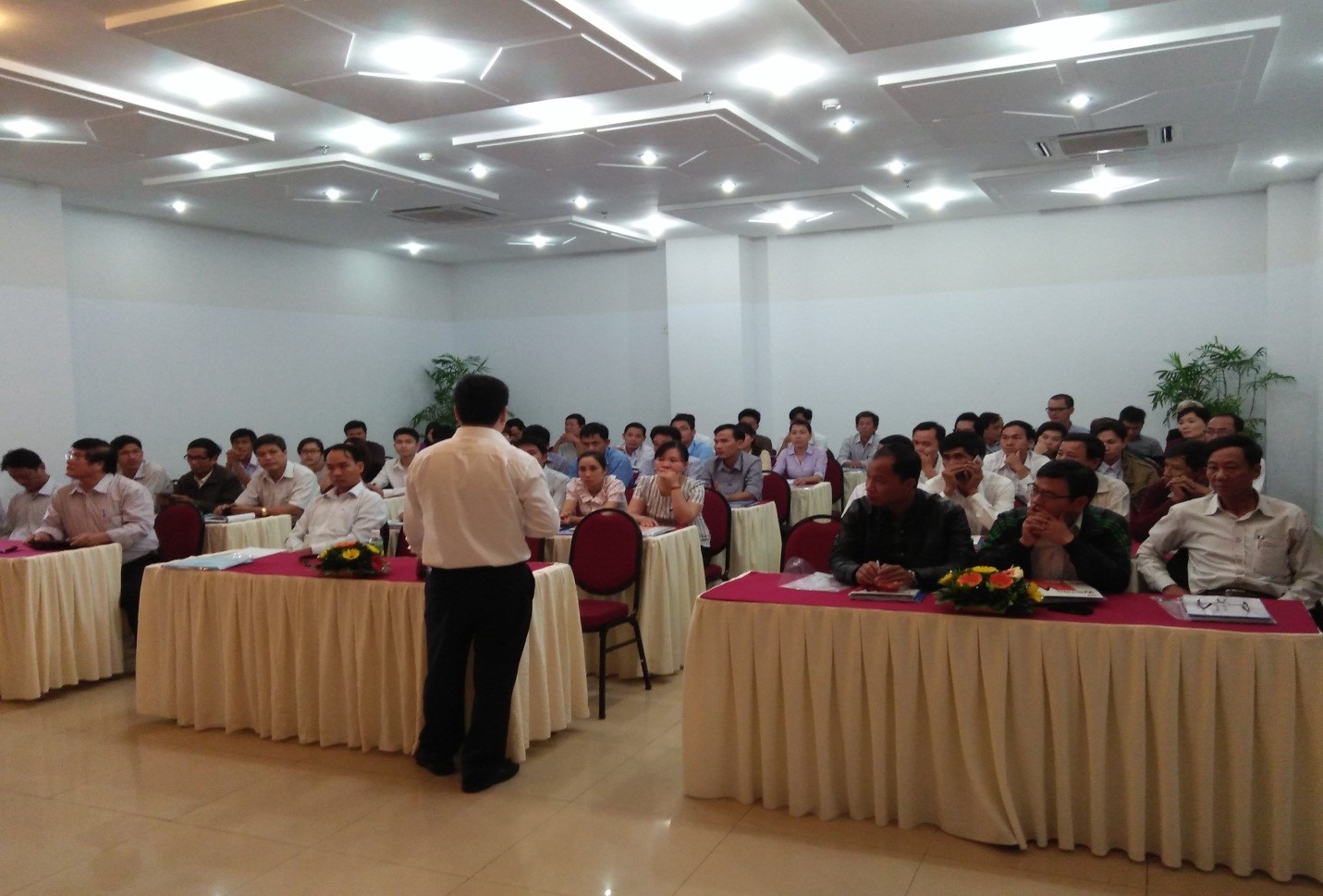 Thành phần tham dự khóa tập huán gồm Cục phòng chống thiên tai, Trung tâm phòng tránh và giảm nhẹ thiên tai, Ban quản lý Trung ương các dự án Thủy lợi, Đại biểu của 5 tỉnh vùng dự án (Đà Nẵng, Quảng Nam, Quảng Ngãi, Bình Định và Ninh Thuận); Cán bộ phụ trách, theo dõi giám sát đánh giá Hợp phần 3 của Dự án; Cán bộ phụ trách, theo dõi giám sát đánh giá Hợp phần 3 của cấp xã (10 xã/tỉnh) và Chuyên gia tư vấn Hợp phần 3