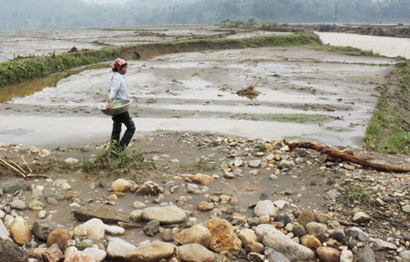 Nhiều diện tích ruộng ở Bảo Thắng bị đất đá vùi lấp