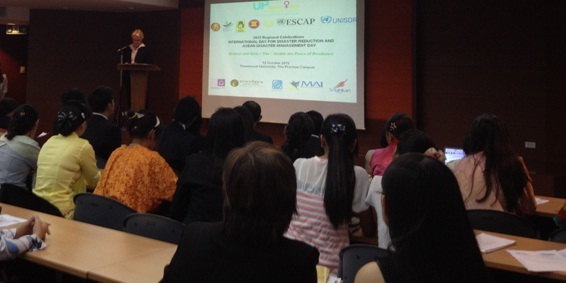Đặc phái viên Liên hợp quốc về công tác Giảm nhẹ rủi ro thiên tai, bà Margareta Wahlstrom, Tổng thư ký ASEAN, ông Surin Pitsuwan và Bộ trưởng Bộ Khoa học và Công nghệ Thái Lan, ông Plodprasop Suraswadi đã có bài diễn văn nhấn mạnh đóng góp to lớn và vai trò quan trọng của nữ giới trong công tác giảm nhẹ rủi ro thiên tai.
