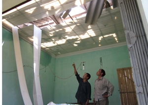 Một ngôi nhà gần như bị tốc mái toàn bộ của một hộ dân xóm Ngoã, xã Mai Hịch. |