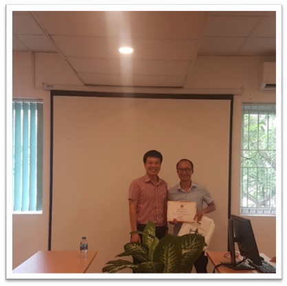 Ông Nguyễn Thành Phương - Giám đốc Trung tâm Chính sách và Kỹ thuật phòng chống thiên tai trao bằng cho học viên