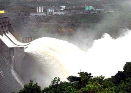 Xả lũ ở thủy điện Sông Tranh 2 (ảnh: VNExpress)
